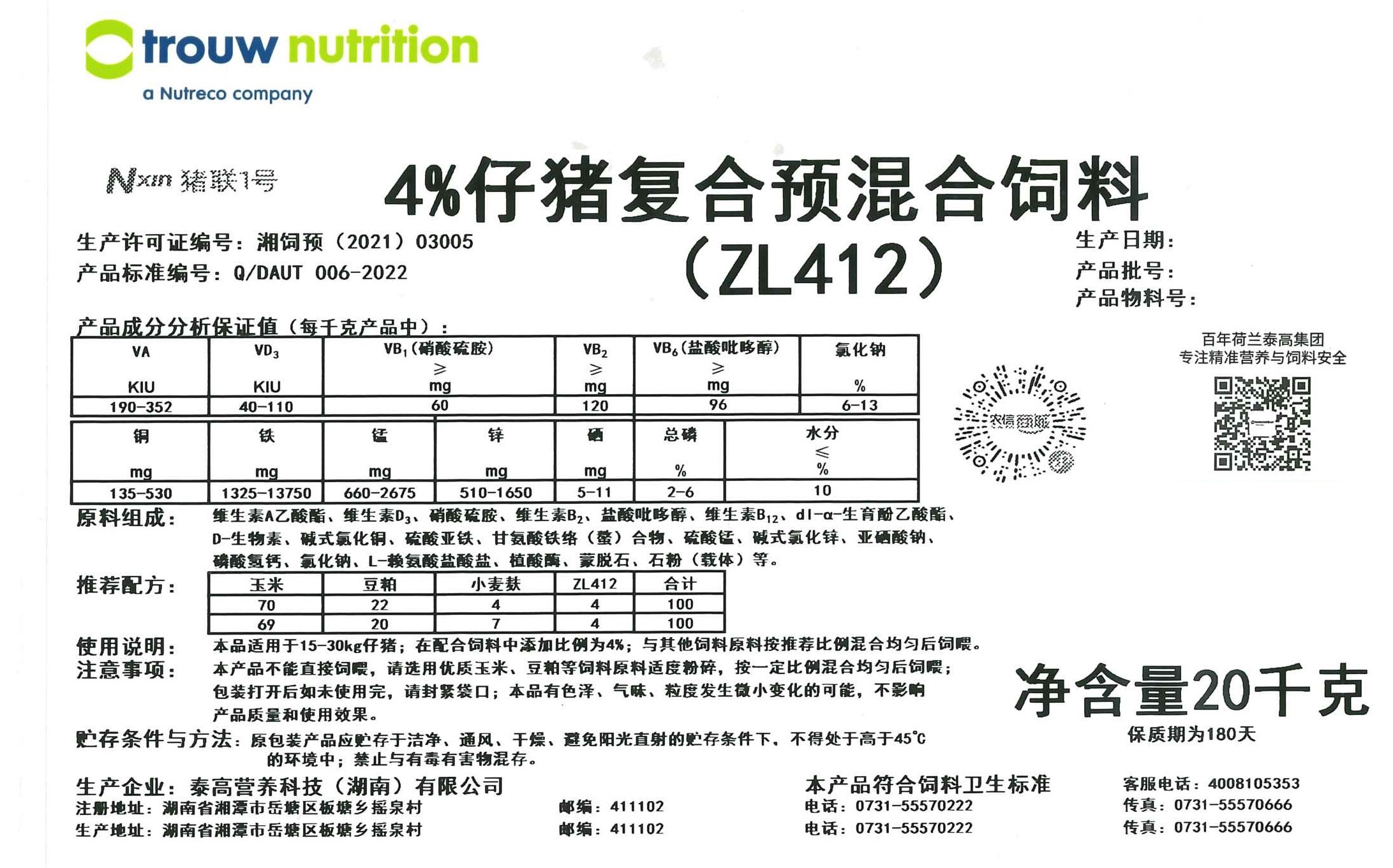 农信优选猪联1号-泰高4%仔猪预混料ZL412-20