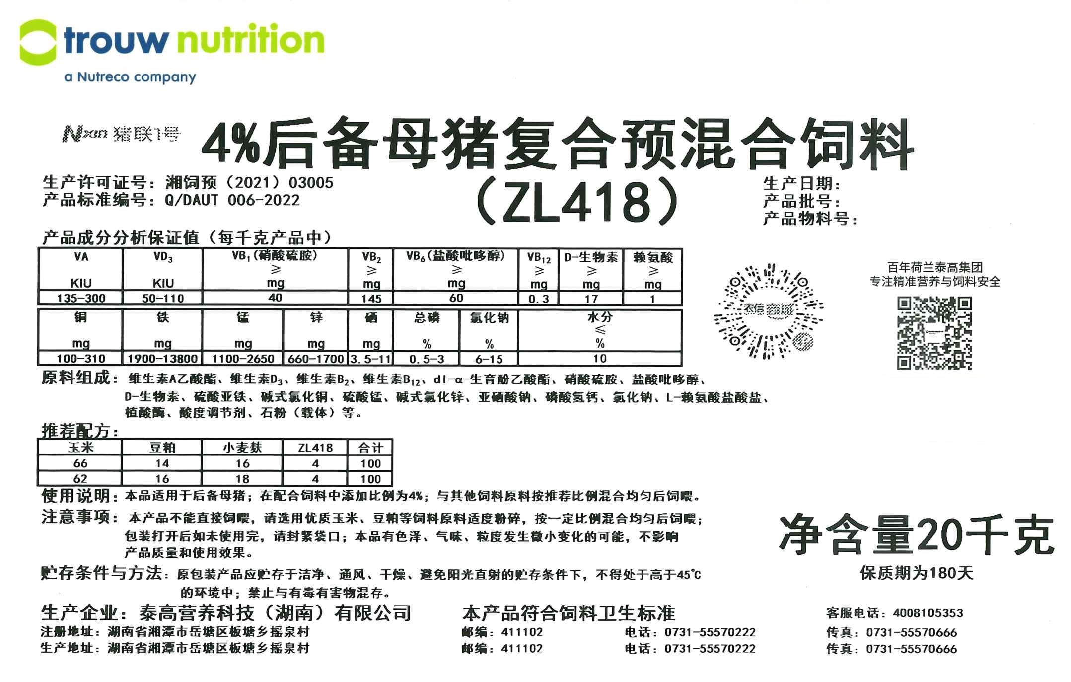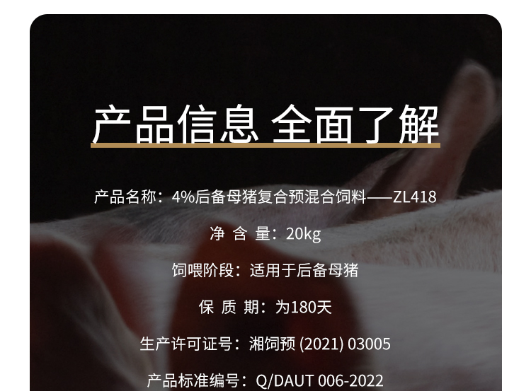 农信优选猪联1号-泰高4%后备母猪预混料ZL418-20