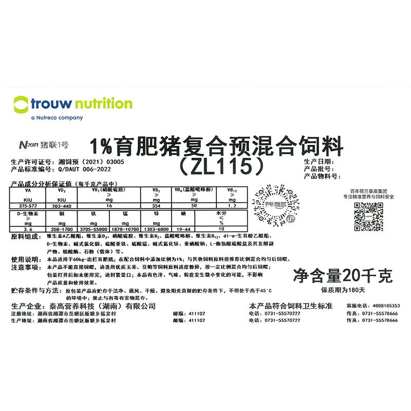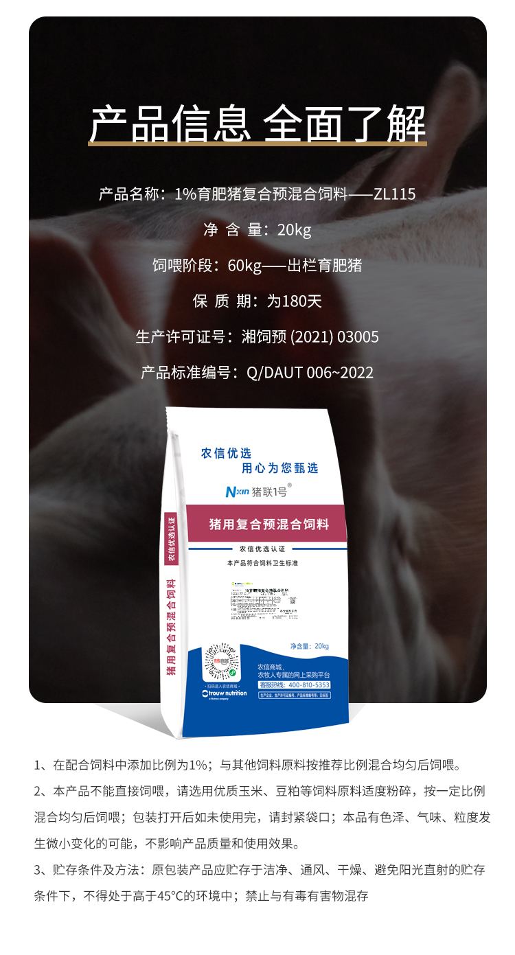 农信优选猪联1号-泰高1%大猪预混料ZL115-20